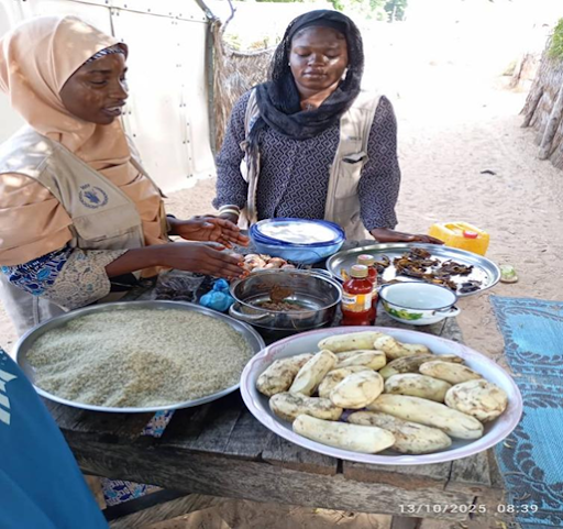 The demonstrations covered practical meal preparation for different age categories: millet pap with groundnut and moringa powder for children aged 6–8 months; sweet potato porridge with fish, spinach, red oil, and locust beans for 9–11 months; and rice with fish, spinach, and red oil for 12–23 months. Emphasis was placed on hygiene, correct ingredient ratios, proper texture, and food storage. Participants actively engaged in discussions and group presentations on the nutritional benefits of locally sourced foods. Feedback from participants indicated high satisfaction, appreciation for hands-on learning, and enthusiasm to apply the new knowledge at home. Many highlighted improved understanding of nutrition, hygiene, and food safety. The training fostered practical learning and encouraged caregivers to adopt nutritious feeding practices to support healthy child growth and reduce malnutrition.